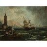 Ecole FRANÇAISE vers 1780, suiveur d'Adrien MANGLARD Marine par gros temps toile 33 x 43,5 cm (restaurations anciennes)
