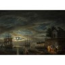 Ecole FRANÇAISE vers 1800, suiveur de Joseph VERNET Feu de camp au port Papier maroufl sur toile 41,5 x 58,5 cm (usures)