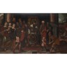 Ecole flamande de la fin du XVIe siècle, entourage d'Anthonie CLAESSINS Moïse enfant et l'épreuve des braises ardentes Panneau de chêne, quatre planches, renforcé 90 × 143 cm (Restaurations anciennes)
