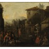 Ecole FLAMANDE de la fin du XVIIe siècle Scène de village avec des joueurs de cartes