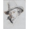 Ecole flamande du XVIIIème siècle Portrait de Rubens Crayon noir, estompe et sanguine sur papier 26 x 17 cm Cadre ancien en bois noirci Provenance : Succession de M D.