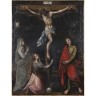Ecole flamande du XVIIe siècle, suiveur de Michiel COXCIE La Crucifixion entre saint Jean, Marie-Madeleine et la Vierge Toile 106×71 cm Sans cadre. (Restaurations anciennes)