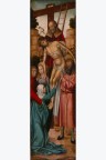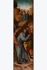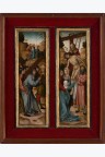 Le Portement de Croix ; La Descente de Croix Paire de panneaux de chêne, une planche, non parqueté, monté dans un même montage. H 58 × L 20 cm Restaurations anciennes, manques au cadre Dimensions avec cadre : 74 × 58 cm