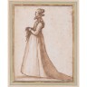 Ecole Florentine de la fin du XVIème siècle Etude de femme en pied de profil Plume et encre brune, lavis brun sur trait de crayon noir H23 x L18, 5 cm