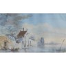 Ecole française du XVIIIème siècle, entourage de Moreau l'Ainé Vue d’un château au bord d’un lac Gouache 12 x 20 cm Provenance : Succession de M D.