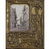 Ecole Française XIXème siècle Rue animée bordée de maisons anciennes gravure 13 x 9 cm cadre en cuivre repoussé Provenance : Succession de M D.