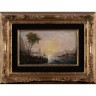 Ecole Francaise du début du XIXe siècle, dans le goût de Johann Mali (1825-1863) Vue d'un port au soleil couchant Huile sur panneau 10, 5 x 16 cm (Soulèvements)