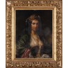 Ecole francaise du XIXeme siècle Portrait d'une femme orientale Huile sur Carton 67 x 53cm Provenance: - Collection privée, France - à l'actuel propriétaire