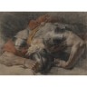 Ecole française du XIXème siècle "Soldat casqué à terre"