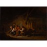 Ecole HOLLANDAISE du XVIIIème siècle, suiveur d'Adriaen VAN OSTADE Les buveurs Panneau parqueté Hauteur : 39 cm Largeur : 54,5 cm Restaurations anciennes