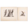 Ecole vénitienne du XVIIIème siècle Etude de personnages, deux feuilles Plume et encre brune sur lavis gris Papier découpé, format irrégulier Dimensions maximum 13,5 x 17,5 cm; 9 x 9,8 cm Collés en plein, rousseurs et taches