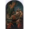 Ecole venitienne vers 1700, suiveur du TINTORET La Déploration Panneau cintré en partie supérieure 33,5×20,5cm Restaurations anciennes. Notre tableau est la reprise de la composition de Tintoret dans le sens de la gravure.