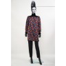 EMANUEL UNGARO PARALLELE - 1980's ROBE en soie façonnée imprimée dans les tons bleu, noir, chaudron et grenat à décor floral stylisé, velours matelassé aux épaules Env. T S