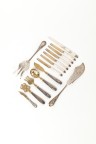 Six fourchettes à escargot et un couteau en vermeil et nacre Cinq pièces de service - manche en argent fourré Un couverts de service Poinçons minerve Poids brut 530 grs environ
