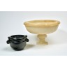 Ensemble de quatre coupes en marbre ou albâtre diverses. XXème siècle H 8 à 22,5 cm Joint : Coupe ronde en albâtre sur pièdouche et un mortier en marbre veiné noir. Travail moderne H 26, 5 x D 41 cm H 14 x D 26 cm