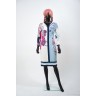 ROBE en crêpe imprimé de motifs floraux sur fond blanc et bleu ciel