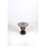 Ettore Sottsass (1917-2007) Table d’appoint Céramique, hêtre et stratifié sérigraphié Édition Zanotta Modèle crée en 1990 H 42 × Ø 40 cm