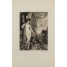 FELIX BRACQUEMOND (1833-1914) FABLES DE LA FONTAINE : Le Singe et le chat, le Songe d’un habitant du Mogol, le Lion amoureux, la Discorde, l’Homme qui court après la fortune, la Tête et la queue du serpent. Série des six planches d’après Gustave Moreau. (Béraldi 795 – 800) 29,2 × 19,5 cm, 27 × 21 cm. Eau-forte. Très belles épreuves sur parchemin ou simili Japon avec le nom de l’éditeur Boussod – Valadon. Petites rousseurs, quelques cassures, frottements en marge à la dernière. Bonnes marges. On joint : Portrait de Femme d’après Ingres, publié dans l