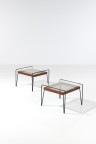Paire de tables basses Métal laqué, verre et cannage Modèle créé dans les années 1950 H 46 × L 60 × P 60 cm