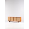 ƒ Martin Eisler (1913-1977) Enfilade Bois de peroba et cannage Modèle créé vers 1960 H 87 × L 220 × P 43 cm