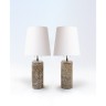 ƒ Peter Lane (né en 1958) Birch Bark Lamp - Pièce unique Paire de lampes de table Céramique émaillée, laiton et textile Modèle créé en 2018 H 72 × Ø 40 cm H 36 × Ø 16,5 cm (base)
