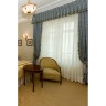Fauteuil, 80x74x80 cm, guéridon H 66 x D 66 cm et paire de rideauxSillón, velador y cortinas