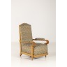 Fauteuil en bois naturel blond, pieds gaine et accotoirs à enroulements moulurés, garniture de tissu "léopard" Travail dans le goût des années 40 H110 x L72 x P76 cm
