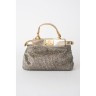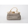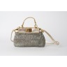 FENDI MINI SAC DU SOIR perlé argenté et cuir métallisé doré, garnitures en métal doré, fermoir pivotant siglé, anse bandoulière amov...
