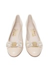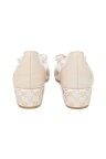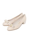 Escarpins en cuir verni blanc cassé, talons en damier or et argent