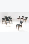 Suite de dix chaises - Modèle BO-63 Teck et cuir Édition Bovirke Modèle créé en 1947 H 81,5 × L 49,5 × P 45 cm Bibliographie : C. Buundegaard, "Finn Juhl, Life Work World", Strandberg Publishing, 2018, modèle référencé p.254