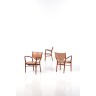 Finn Juhl (1912-1989) Modèle FJ 46 Ensemble de trois fauteuils Bois et cuir Date de création : vers 1946 Edition Niels Vodder Estampille de l'éditeur H82×L63×P59,5cm