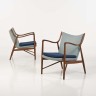 Finn Juhl (1912-1989) NV45 Paire de fauteuils Teck et tissu Edition Niels Vodder Date de création : 1945 H 83 × L 69 × P 71 cm Bibliographie : Grete Jalk, ed., Dansk Møbelkunst, gennem 40 aar, Volume 2: 1937-1946, Copenhagen, 1987, pp. 276-77