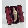 Flacon à parfum en argent anglais de forme courbe. Dans un écrin en cuir et velours de la maison Ekglinton & co.