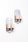Paire d'appliques Miroir, laiton nickelé, bois et textile Étiquette 'Vetri d'arte Fontana' Modèle créé dans les années 1940 H 42,5×L 21 ×P 13cm