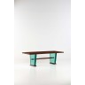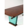 Bois verni, laiton, métal et verre teinté