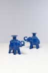 Paire de bougeoirs dits 'Éléphant' Céramique émaillée Édition Artcurial Signés 'Art Curial FXL 85 LALANNE' et numérotés '129/900' et '130/900' Modèle créé en 1985 H 14,5×L 16×P 6,5cm