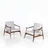 Fratelli Reguitti Paire de fauteuils Noyer et textile Edition Fratelli Reguitti (Cachet FR) Date de création: années 1950 H 80 × L 77 × P 73 cm