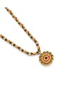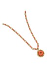 Collier composé de boules en or jaune 18k (750‰) texturé et boules de corail en alternance, au centre un pendentif rond (amovible)