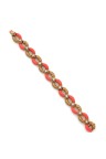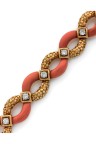 Années 1970 Bracelet en or jaune 18k (750‰) et platine (850‰), composé de maillons ovales en or texturé et corail réunis par des motifs carrés sertis d'un diamant taille brillant Signé, poinçonné Longueur : 18 cm Poids brut : 51,4 g