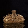 Fronton de miroir en bois doré à décor d'un trophée de musique (fragment). XVIIIe siècle (accident). 43 x 74 cm Provenance : Succession de M D.