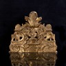 Fronton de miroir en bois doré à décor de vase de fleurs et oiseaux ; (fragment). XVIIIe siècle (accident). 28 x 33 cm
