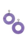 Paire de pendants d'oreilles ornés de deux disques en jade mauve ajourés et gravés de rinceaux Monture en or blanc 18k (750‰) diamants ronds et émeraudes cabochon Hauteur : 6,5 cm Poids brut : 20,9 g