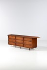 Buffet Noyer Édition Widdicomb Étiquette de l'éditeur Signé au feu 'George Nakashima' dans un tiroir Modèle créé en 1959 H 82 × L 250 × P 57,5 cm