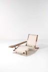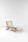 Chaise longue Noyer et textile Modèle créé vers 1958 H 80 × L 170 × P 88 cm Bibliographie : 'George Nakashima, 50 ans de création', Ed. Galerie Alexandre Guillemain, Paris, 2018, catalogue d'exposition, modèle similaire pp. 30-33