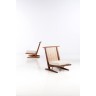 George Nakashima (1905-1990) Conoid - Pièce unique Paire de chauffeuses Noyer, noyer blanc et textile Edition Studio Nakashima 1989 Signées 'Lounge Nakashima April 3 1989' Date de création : 1989 H 85,5 × L 87 × P 88 cm