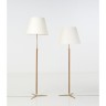 Gino Sarfatti (1912-1985) Modèle 1025 Paire de lampadaires Laiton gainé de cuir naturel Date de création : vers 1946-1948 H. max. 235 × Ø 60 cm Bibliographie : Marco Romanelli et Sandra Severi, Gino Sarfatti, opere scelte 1938-1973 selected works, Silvana Editoriale, Milan, 2012, p.444