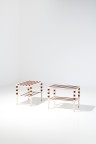 Paire de tables basses porte-revues Noyer laqué, noyer et laiton Modèle créé vers 1950 H 51 × L 65,5 × P 42 cm Le certificat des Archives Gio Ponti pourra être demandé par l'acquéreur à l'issue de la vente, aux frais de ce dernier.