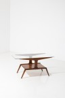 Table basse Noyer et verre Modèle créé vers 1948 H 46×L 96×P 42cm Provenance : Modèle créé pour l’aménagement du paquebot transatlantique Conte Biancamano Expertisée par les Archives Gio Ponti