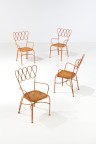 Suite de quatre chaises Fer laqué Édition Casa e Giardino Modèle créé vers 1950 H 85 × L 50 × P 49 cm Le certificat des Archives Gio Ponti pourra être demandé par l'acquéreur à l'issue de la vente, aux frais de ce dernier.