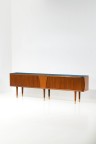 Enfilade Acajou, laiton et formica Modèle créé dans les années 1930 H 85 × L 277 × P 46 cm Expertisée par les Archives Gio Ponti.